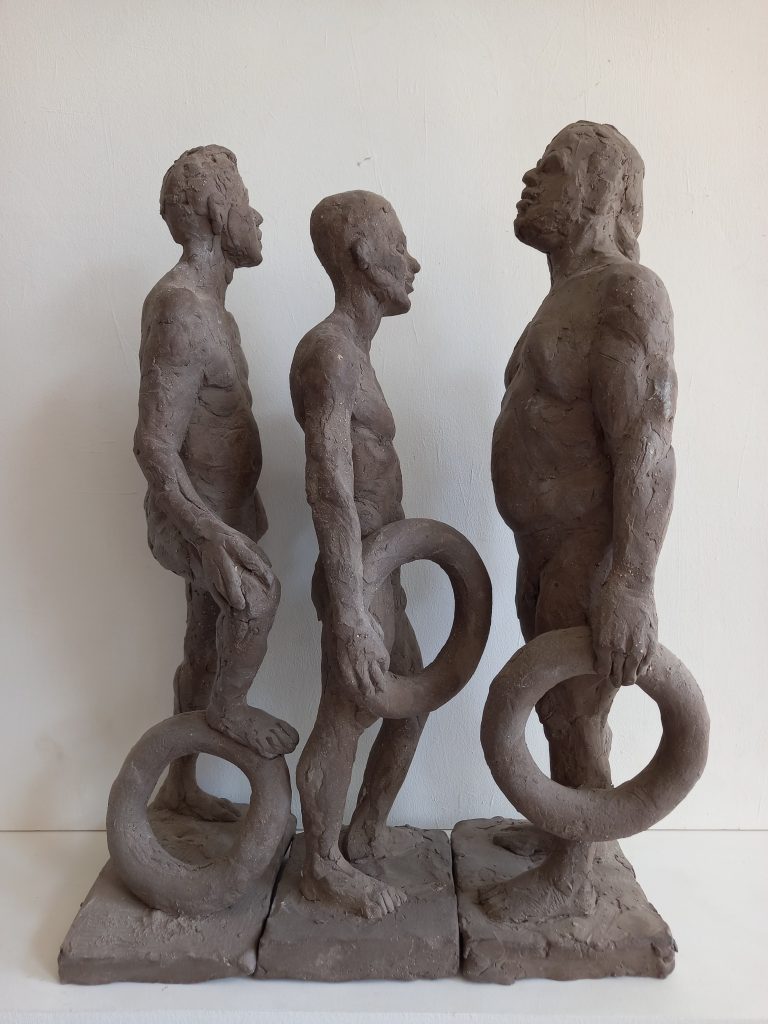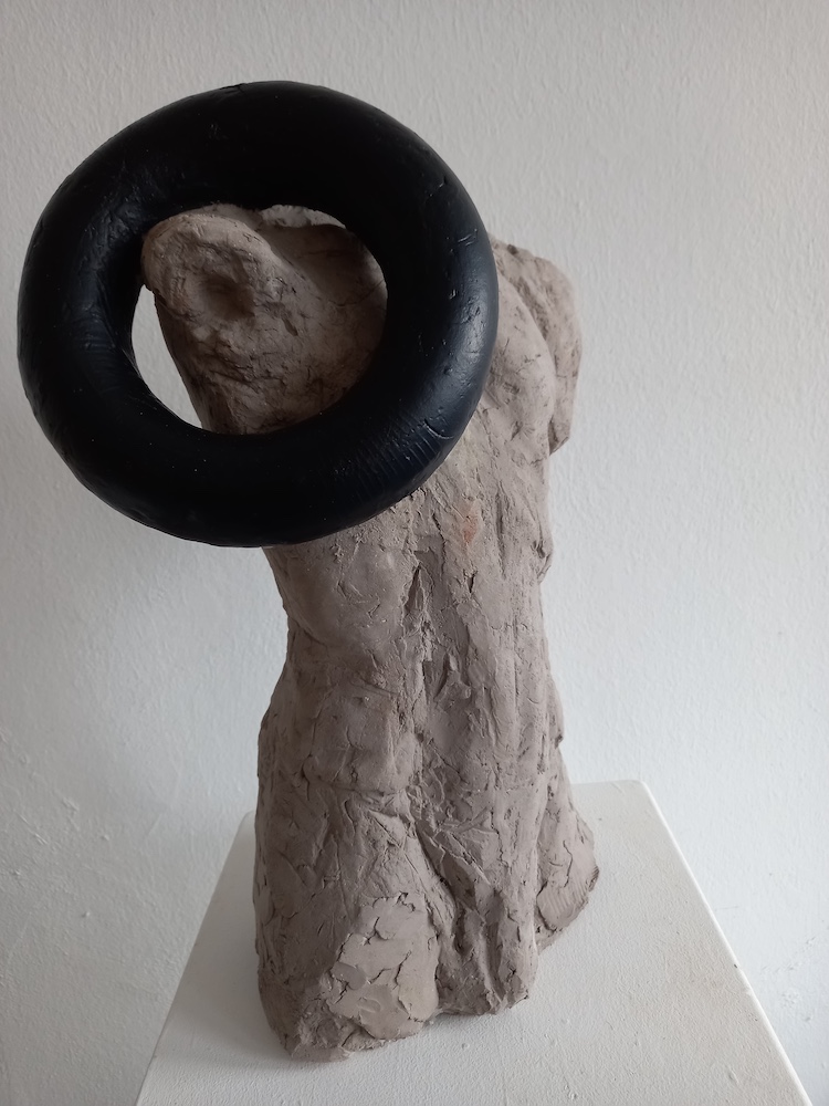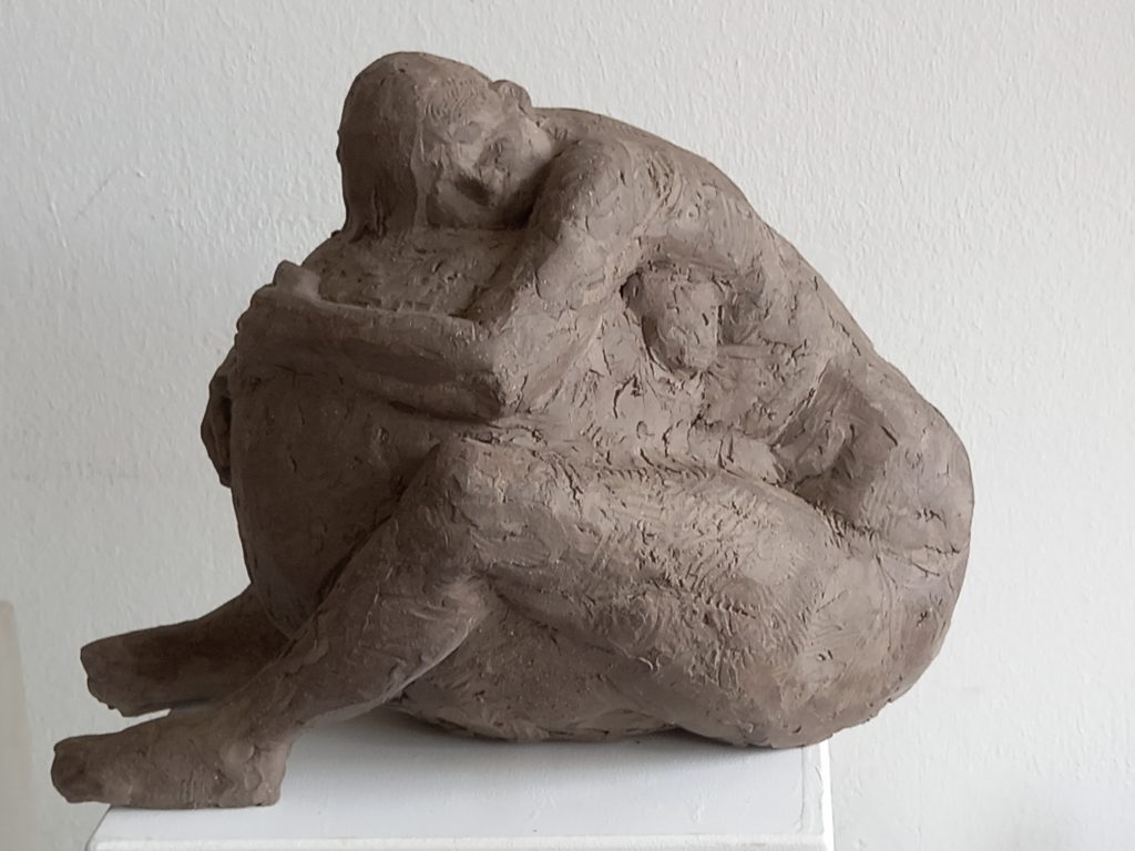 Frau mit Kugel 2023, Terrakotta, 30 x 40 x 32 cm