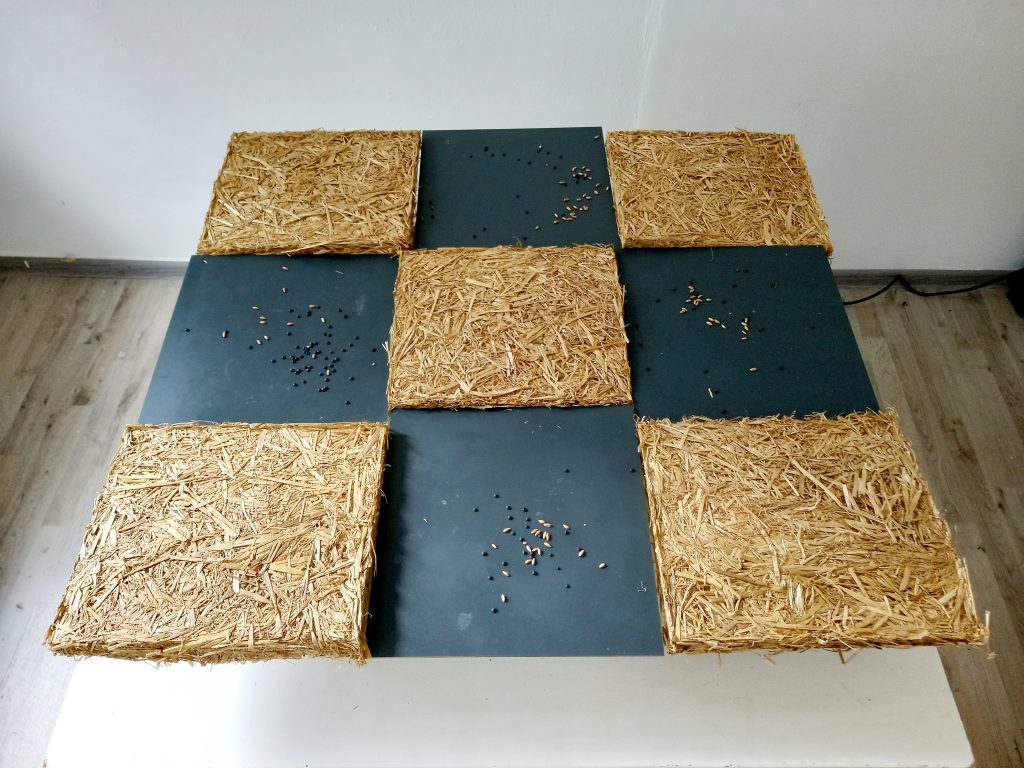Die Geräusche der Kornkäfer sind von Wissenschaftler*innen aufgenommen worden. Frau Dr. Christina Müller-Blenkle, Julius Kühn-Institut, hat mir freundlicherweise erlaubt, sie für die Installation zu verwenden.